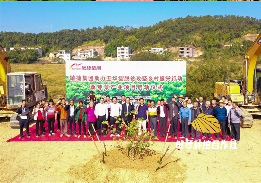 项目背景:【敏琴桑芽菜】是敏捷集团助力五华精准扶贫,积极探索“五扶一美”的重要帮扶项目措施之一。2019年11月,敏捷集团在梅林镇琴口村播种下第一颗桑芽菜种苗,标志着敏捷集团桑芽菜产业扶贫项目正式启动。